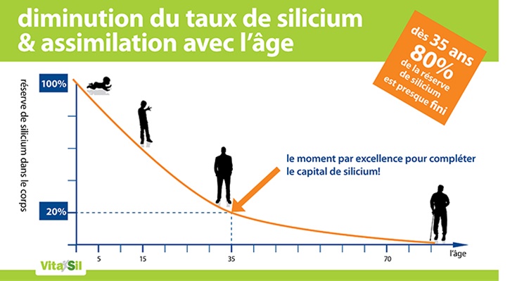 La diminution des réserves de silicium dans notre corps, ce qui démontrent des recherches, dénote l’importance de compléter ces réserves. Dans la nature, silicium existe beaucoup sous forme minérale comme le granit, le sable et le quartz. Ces formes de silicium ont tendance à polymériser et sont difficiles à assimiler par l’organisme.